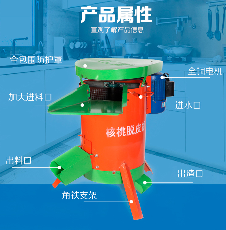2、本設備脫凈率高于99%,核桃殼破損率小于0.5%。適用于小型加工企業或核桃加工經營商戶。